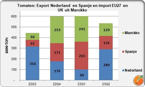 - Van de Duitse import vertegenwoordigen Nedewrland, Spanje en Marokko 80% en bij de Engelse import gaat het zelfs om 90%.