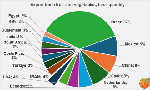 - Iran is vooral een exportland van verse groenten en fruit. Jaarlijks exporteert Iran rond de 5,5 miljoen ton verse groenten en fruit.
